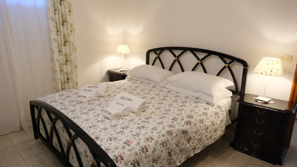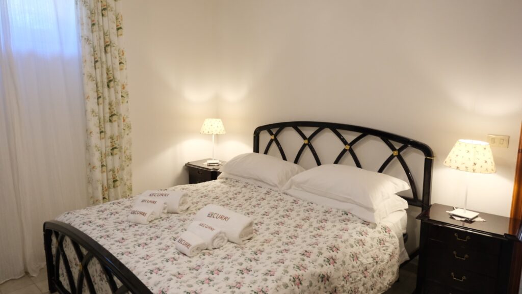 Finally, the exterior of the apartment of Villa Curri is surrounded by a garden with swimming pool and facilities such as deck and outdoor shower.