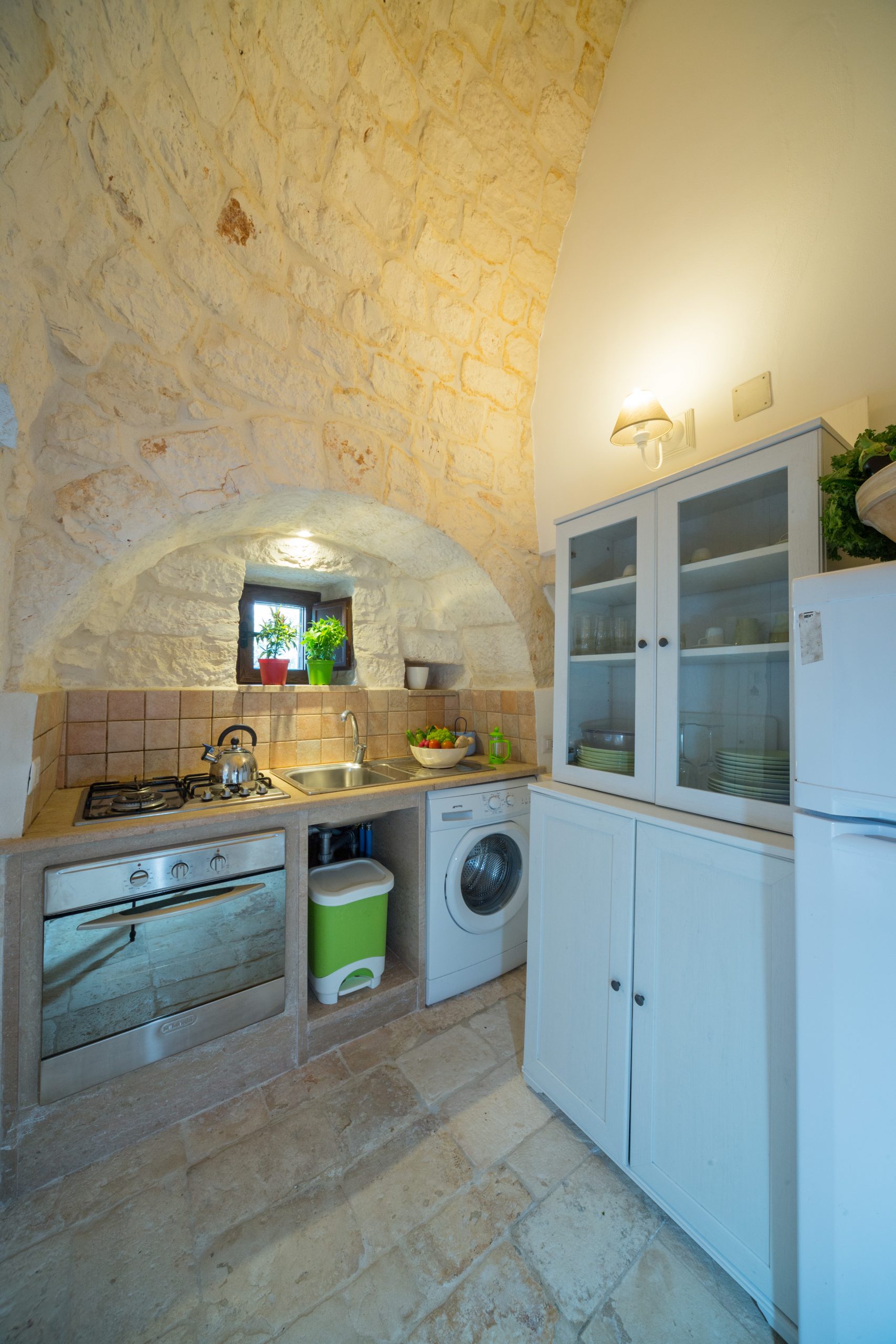 Trulli Curri consists of 2 bedrooms (with double beds) and 2 bathrooms; it comes with a kitchenette, lounge area and dining area. The property boasts a large veranda and off-street parking for 2 cars.